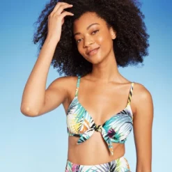 Women’s Tropical Print Side-Tab Medium Coverage Hipster Bikini Bottom – Kona Sol⢠Navy Blue