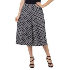 24seven Comfort Apparel Womens Black Diamond Print A Line Midi Skirt With Pockets