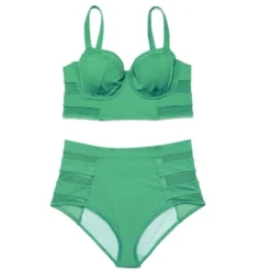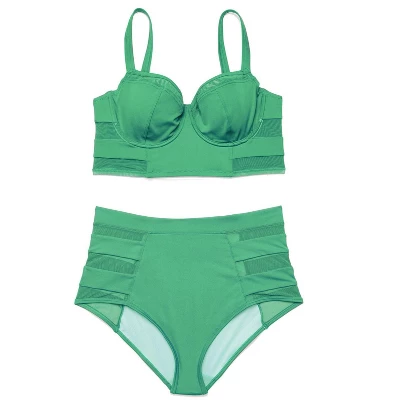 A flattering longline balconette and a matching high-waisted bottom—perfected with hip-accentuating mesh details—are our favorite combo of the summer. No explanation needed.