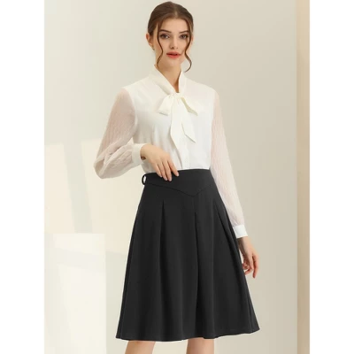 Show off your charm in this Allegra K A-line skirt in all seasons with a casual top or elegant blouse. The knee-length skirt details a pleated front and a belted waist, making you cute and charming in daily life. Wear yours with heels, sneakers or sports shoes for a casual look. Whether you’re in the office or out on the town, this skirt is perfect for any occasion.