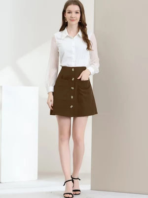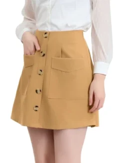 This skirt features buttons front, pockets, and a-line, suitable for spring and summer wear.Suitable for weekend, casual gatherings, shopping, coffee shop, brunch, etc.A comfy triblend skirt is updated with perfectly soft fabric and aline design for understated charm.A comfy spring/summer skirt is updated with perfectly buttons decor, A-line hem, refined silhouette and solid collar for unique feminine and stylish twist.