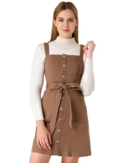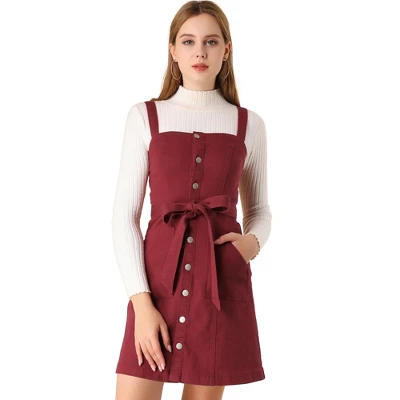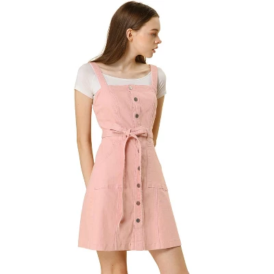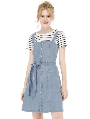 Update your weekend collection with this classic dress. The fit and flare dress structure adds a playfulness to your outfits and the button detailing gives a 60s-inspired feel. This jean dress features a square neck, sleeveless design, and adjustable strap. Perfect for the weekend, and paired well with trainers and a cross-body bag for an off-duty look.