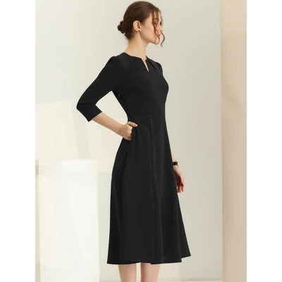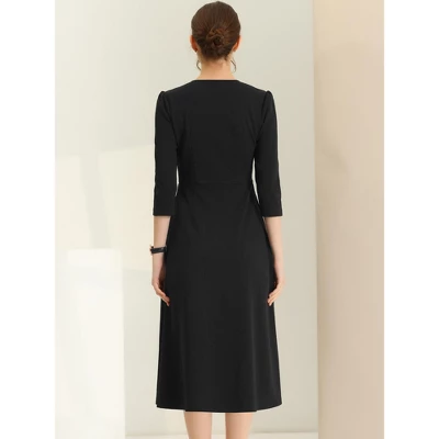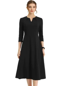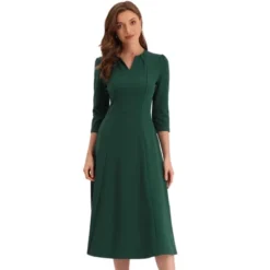 A solid elegant dress is a must-have item for your dress collection. Occasion: Wear to Work, Job Interview, Cocktail, Wedding Guest, Church, Daily Wear. Paired perfectly with your high heels and a shoulder bag. Model body size: Height: 5’10”, Chest: 34 1/4 inches, Waist: 26 3/8 inches, Shoulder: 15 3/4 inches, Hip: 38 1/4 inches, Weight: 128 lbs, the model is wearing an X-Small.