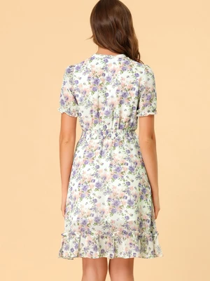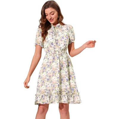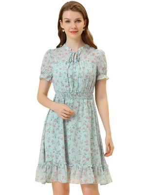 Opt for a sophisticated look with the chiffon floral dress. Delicately adorned with fluid ruffles through the skirt, puff sleeves and a demure stand collar with a tie neck for a feminine look. Team it with smart flats for a modern daytime look. Occasions: Casual, Office Work, Dating, Cocktail Party, Weekend Gathering, Holiday, And Daily Wear.