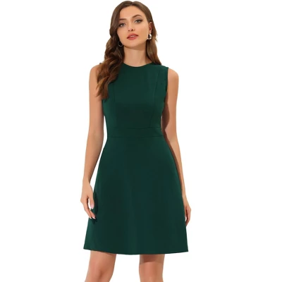 Offer a clean and polished look for the day with this sleeveless dress. This a-line pure color dress with sleeveless accents flatters your silhouette. Cut from stretch knit fabric and featuring a round neck, a-line silhouette, and above-the-knee. Wear yours with heels for an elegant look. Whether you’re in the office or out on the town, this dress is perfect for any occasion.