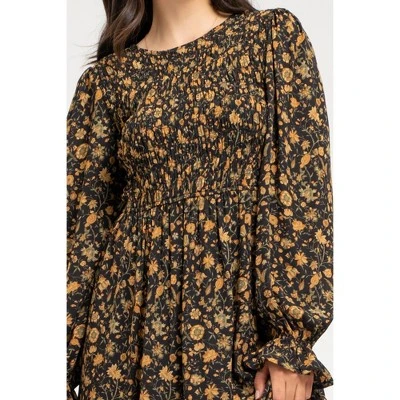 Dazzle at your next special occasion with the August Sky Women’s Floral Smocked Body Long Sleeve Dress. This exquisite dress is a true epitome of style and grace. The smocked body creates a flattering and form-fitting silhouette that accentuates your curves in all the right ways. The long sleeves feature smocked wrists with delicate ruffle detailing, adding a touch of elegance and sophistication. With its elastic waistline, this dress ensures comfortable wear without compromising on style. The back keyhole button closure adds a charming detail to the overall design. The three-tier bottom enhances the flow and movement of the dress, creating a captivating effect as you walk. While lined underneath for modesty, the dress retains a hint of subtle sheerness on the sleeves, adding a touch of allure. From cocktail parties to romantic evenings, this dress is your perfect choice for an enchanting and memorable occasion.