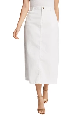 Part of our True Fit Denim collection, this must-have skirt is crafted from easy-fitting stretch denim and complete with a lower contoured waistband for comfort and curve appeal. 5-pocket styling. Zip-front and button closure.