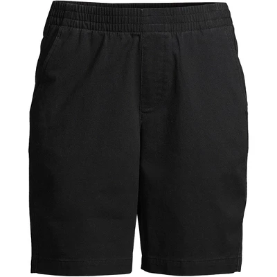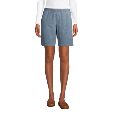 Our Landsâ End Womenâs Mid Rise Pull On 10â Chino Bermuda Shorts are the perfect example of stylish comfort. Cute comfortable stretchy and stylish you can wear these shorts from morning until night and never suffer an ounce of discomfort. Made from a substantial yet crisp cotton twill with just a hint of stretch and a covered elastic waistband these pants offer that stretchy mobility you need to fit just right so they feel and look amazing. The breathable nature of cotton also keeps you cool and comfortable when you work or play indoors or outside. But the best part? They present like a dressy pair of shorts thanks to the front hip pockets back welt pockets and neatly stitched faux zip fly. But donât worry they are still comfy enough to lounge in. Exactly what you want in a great pair of shorts right? Wear them with tunic tops dress blouse blazers suit jackets cardigan sweaters sleeveless shirts or a basic cotton tshirt or button down shirt for a run to the store or a fun day around town. Add some sandals heels or slip-on boat shoes and youâll have a complete stylish outfit in minutes. Womenâs Mid Rise Pull On 10 inch Chino Bermuda Shorts are available in a variety of colors and sizes.
