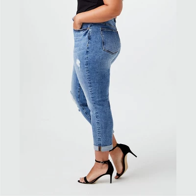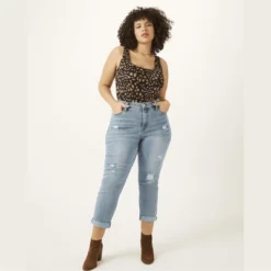 If youâre looking for a weekend jean primed to style with colorful tops or beaded tanks for going out, youâve met your match! The relaxed fit, the light distressing, and the rolled hem add a special touch to this weekend staple.