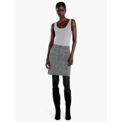 A little bit poppy, a little bit preppy, and all the way in-style. Whether you’re pairing it with the matching jacket or creating an outfit all your own, the right amount of classic houndstooth in hi-contrast black and white is just what the season ordered. The knit skirt is a pencil silhouette designed to sit at the waist and features a fly front with a button closure. Falls just above the knee.