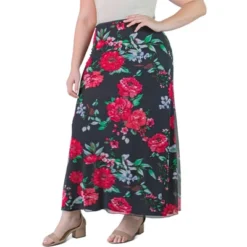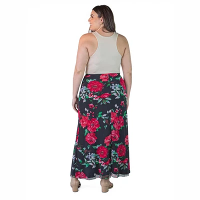 Make a romantic statement with the 24seven Comfort Apparel Black and Red Floral Print Sheer Overlay Elastic Waist Maxi Skirt. This skirt is designed to be both comfortable and stylish, featuring a soft and comfortable materials that will keep you feeling great all day long. The black and red floral print gives a bold and romantic look, perfect for Valentines Day. The sheer overlay adds a touch of elegance, while the elastic waistband provides a comfortable fit. The maxi length gives a dressy look that is perfect for any special occasion.