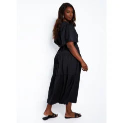 This A-line tiered dress features a classic silhouette with short sleeves, and comes complete with a matching belt. Its airy design is perfect for warm days or nights, while its sophisticated look will ensure you stand out from any crowd.