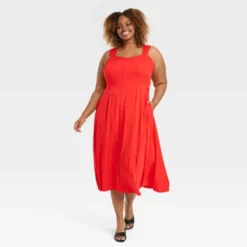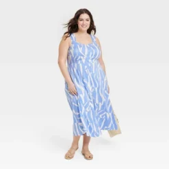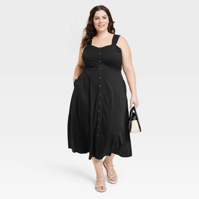 Amp up your closet for casual outings or weekend brunch dates with friends with this Sleeveless Button-Front A-Line Dress from Ava & Viv™. Made from a soft and stretchy fabric that drapes beautifully for a stunning silhouette, this midi A-line dress features a flattering V-neckline. The button-front design creates a feminine vibe, while side pocket adds functional flair to your look. Keep it casual with sneakers or dress it up with sandals for dress-up occasions.