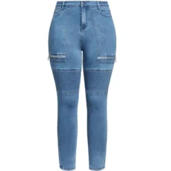 Flaunt your fashion sense with the Asha Patch Corset Jean. These dark denim jeans come with distressed detailing and a vintage-style patch on the knee, giving you a fashionable look that’s sure to turn heads. The high-rise fit and skinny leg design are specifically tailored to flatter your curves, while the quad button corset provides a stylish and unique touch.Bold and fiercely fashionable, no one does plus size fashion like City Chic. Loved around the globe for its diverse range of fashion-forward styles for any occasion. From show-stopping evening gowns to workwear and casualwear, City Chic will take your style to bold new heights. Available in sizes 14-32.