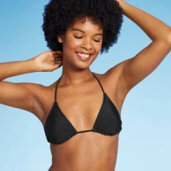 Shiny light purple bikini top from Wild Fable⢠with one-shoulder asymmetrical design. Features metal ring detail at the shoulder. Made with soft and stretchy fabric for comfortable wear and movement. Adjustable straps and back hook closure. Removable cups offer customizable coverage.
