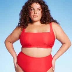 Bralette bikini top from Wild Fable⢠in a solid hue. Made from soft fabric with spandex and full lining for stretchy comfort in and out of the water. Designed with a square neck and opaque construction. Removable cups offer customizable coverage. Back tie provides a snug, stay-put fit.